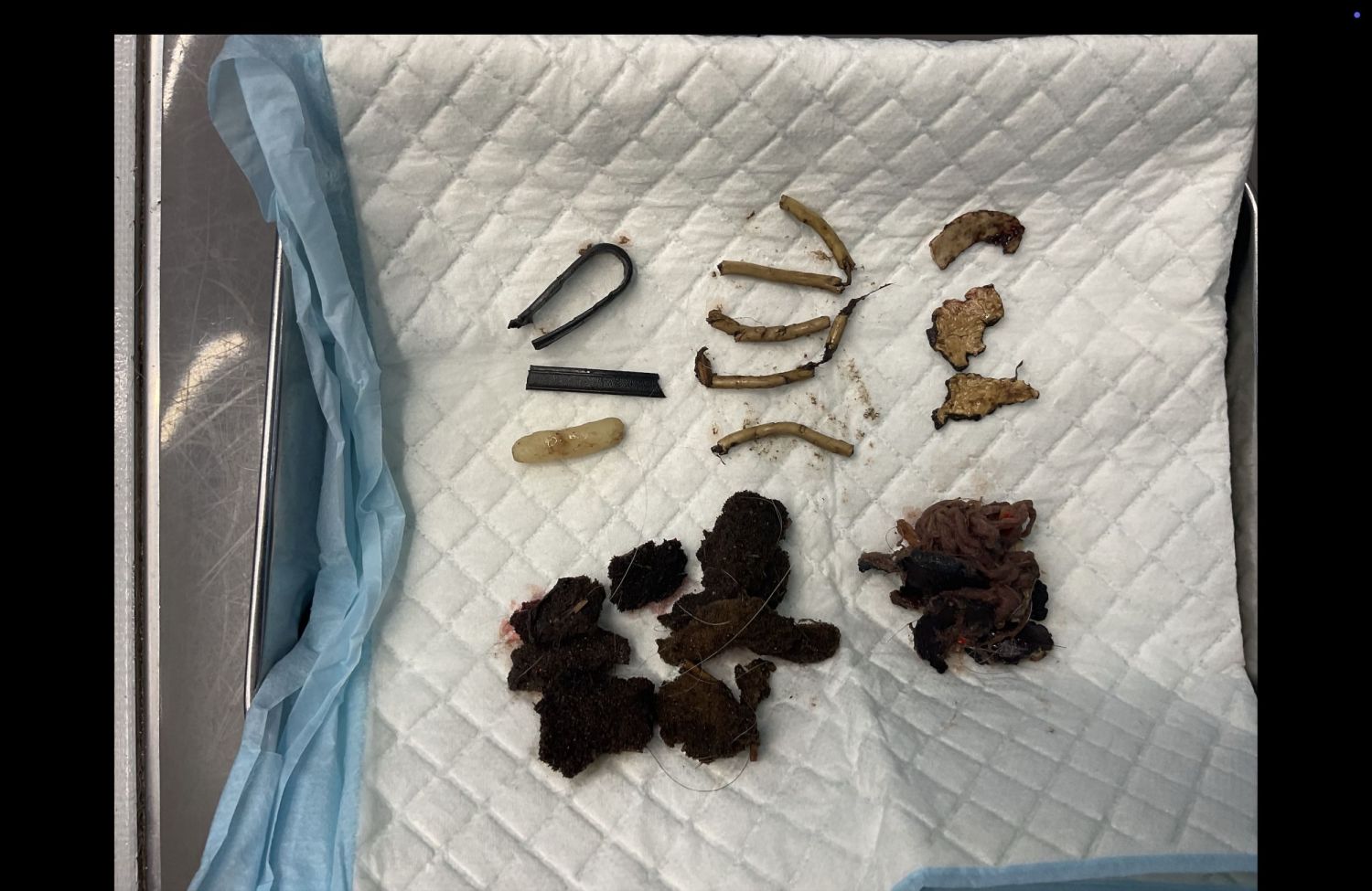 異物の誤飲は非常に多い疾患です。今回の症例さんでは量が多かったために内視鏡での摘出はできませんでしたが、胃内にあるうちに来院していただければ開腹手術をせずに内視鏡摘出で済む場合もあります。誤飲をしたことが確実な場合は、様子を見ずに早めに来院してください。